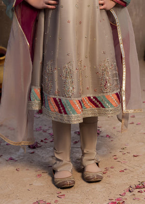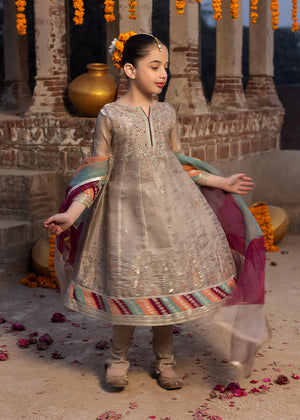 Frock with flarred trouser, paired with organza dupatta; this outfit competes the look with embroidery
