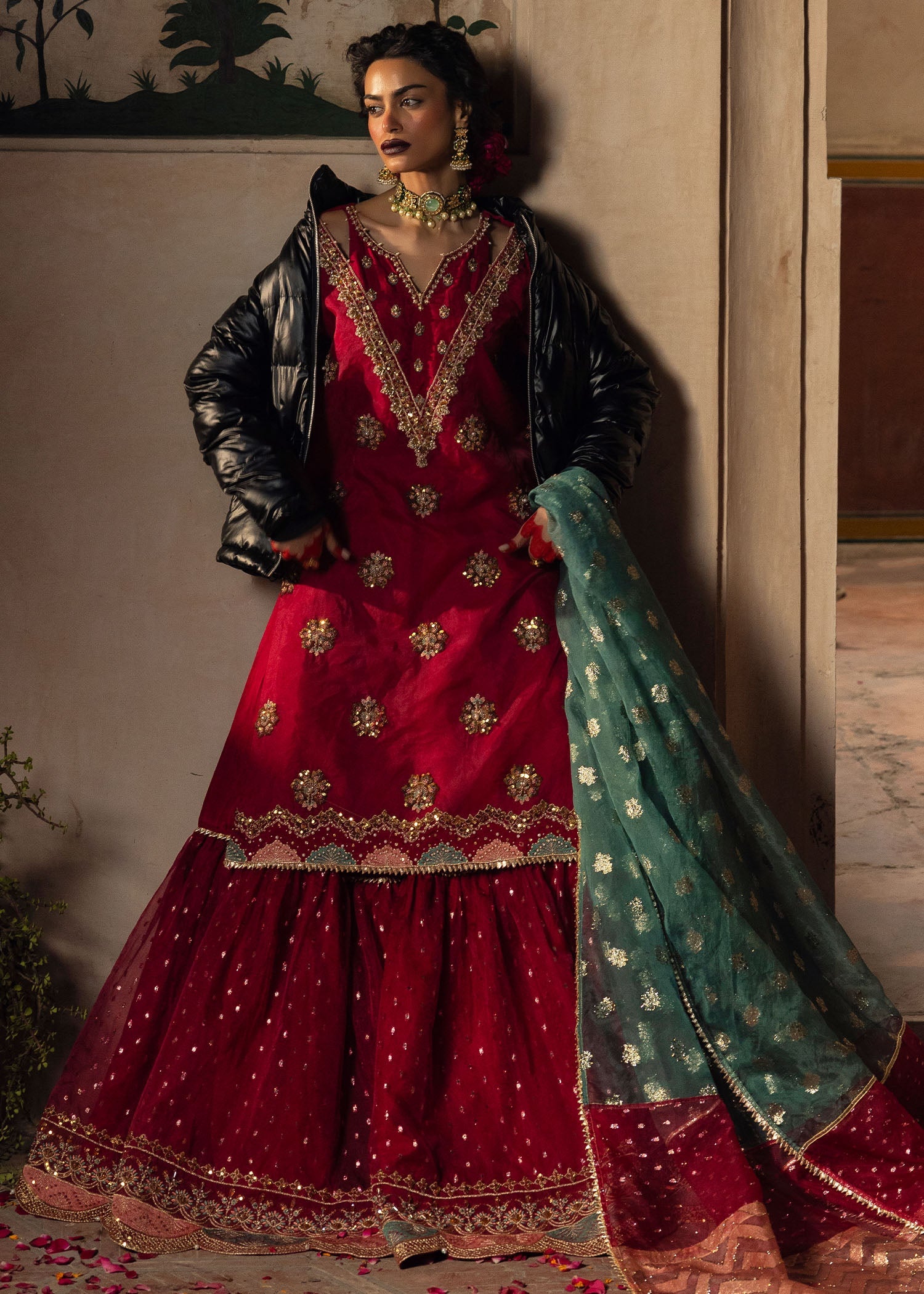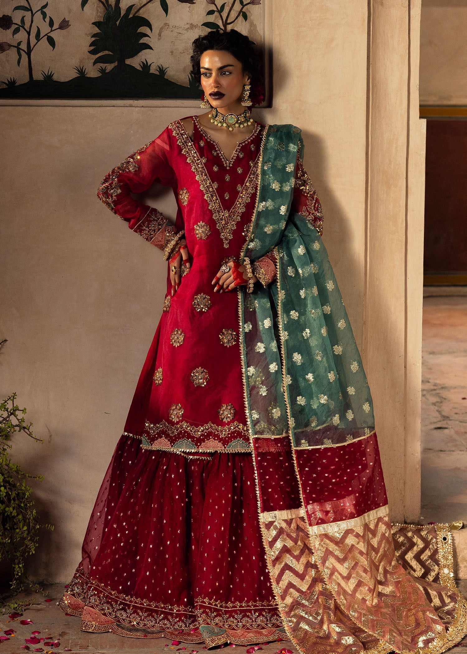 Heavily embroided and embellished short shirt paired with garara.