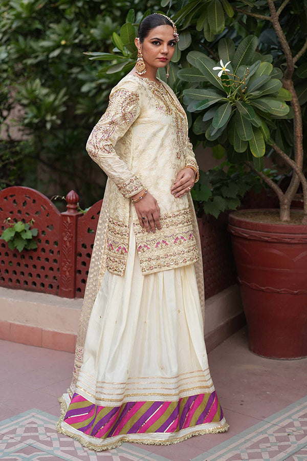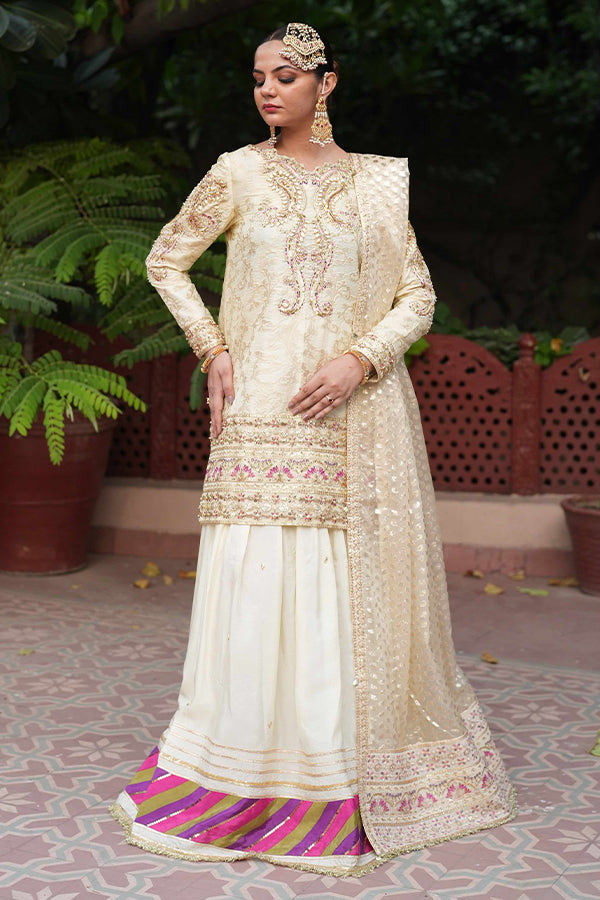 Heavily embroided and embellished short shirt paired with lehanga.