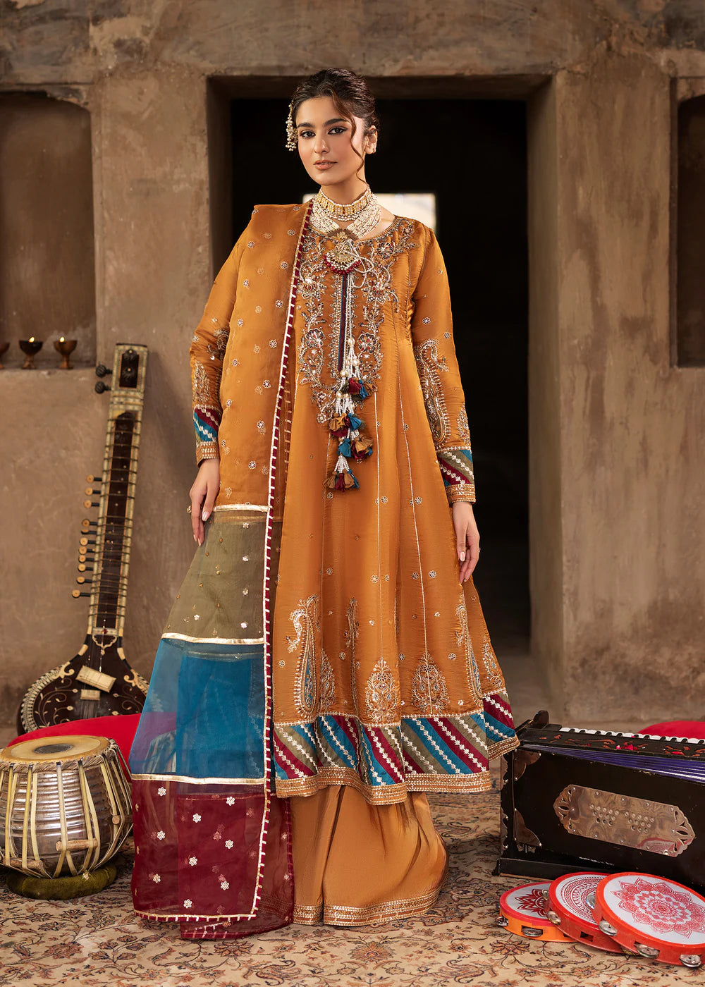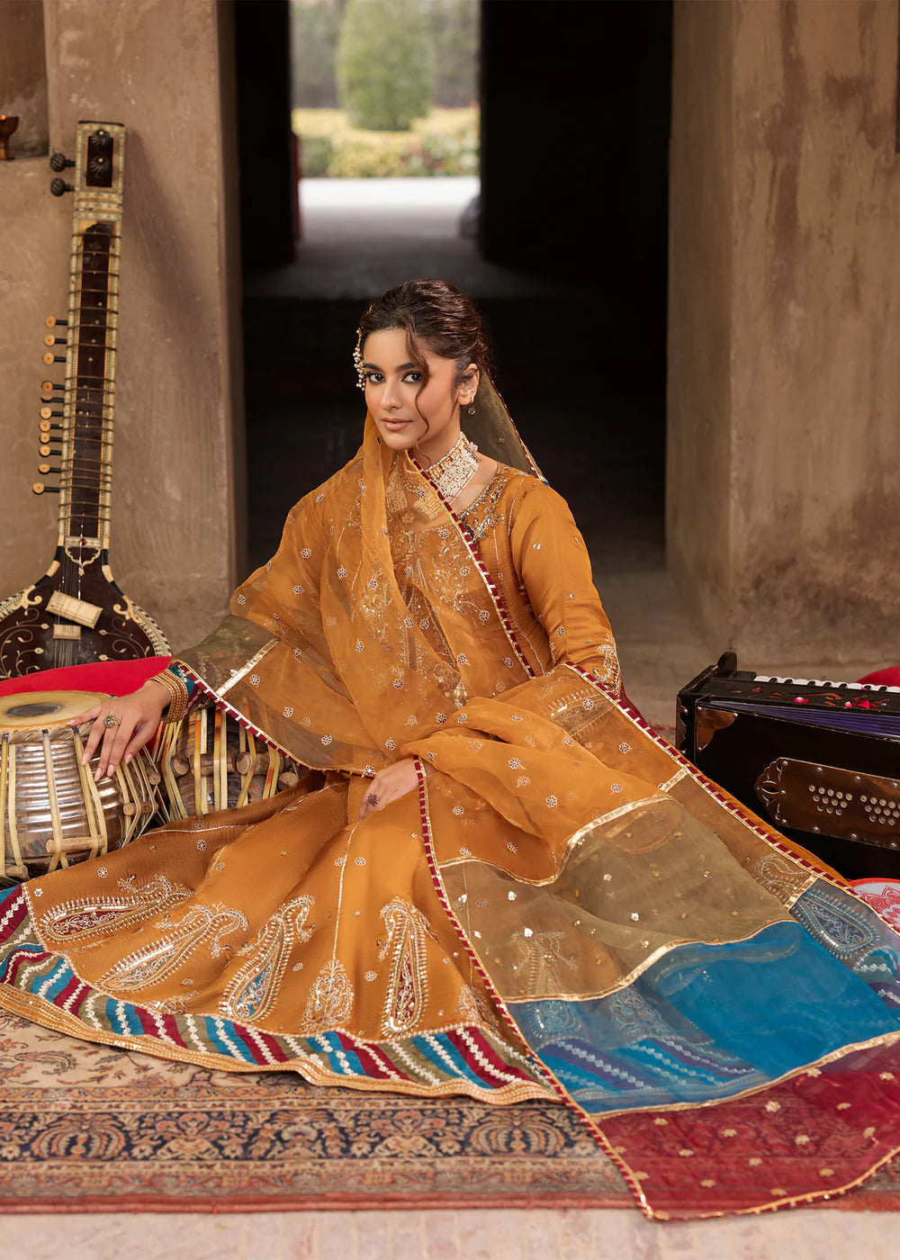 Short Shirt with Sharara paired with Organza duppata, an outfit completes the look with heavy embroidery and embellishment,Lining is included.