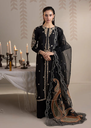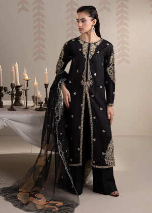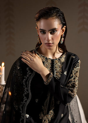 Long front open shirt with straight pants paired with organza duppata, an outfit completes the look with heavy embroidery and embellishment.