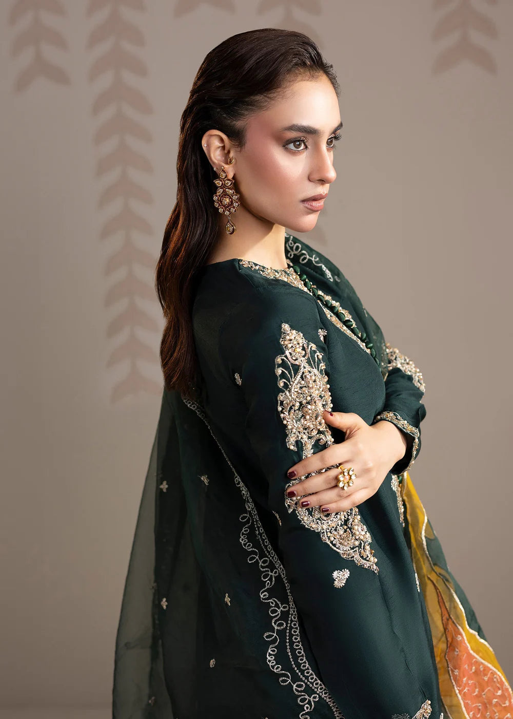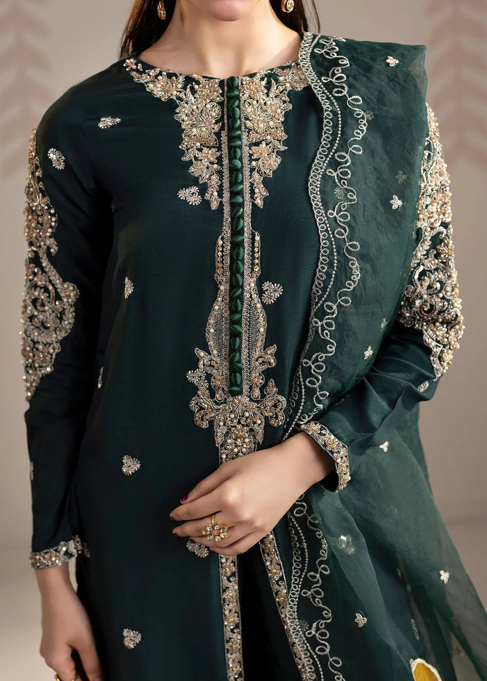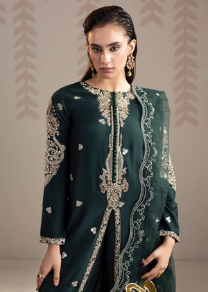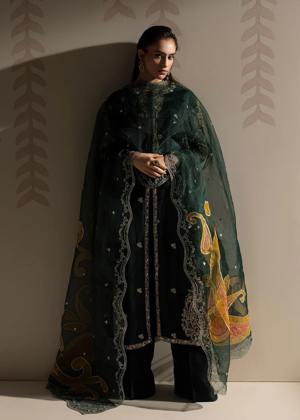 Long front open shirt with straight pants paired with organza duppata, an outfit completes the look with heavy embroidery and embellishment.